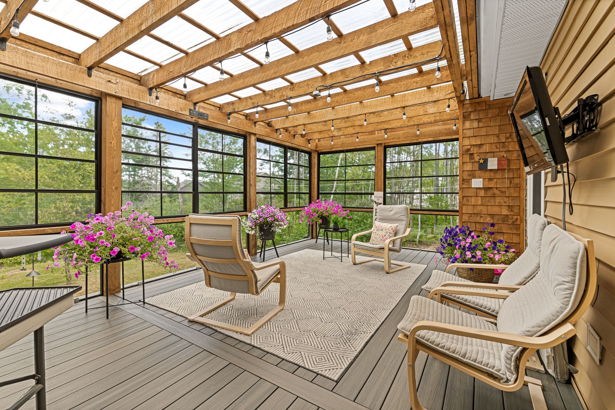 Stunning executive bungalow in Shediac with 9 ft ceilings, an oversized double garage, and a private tree-lined backyard. Enjoy a bright open-concept main floor, a large 3-season sunroom, and a fully finished walk-out basement with extra living space and direct outdoor access.