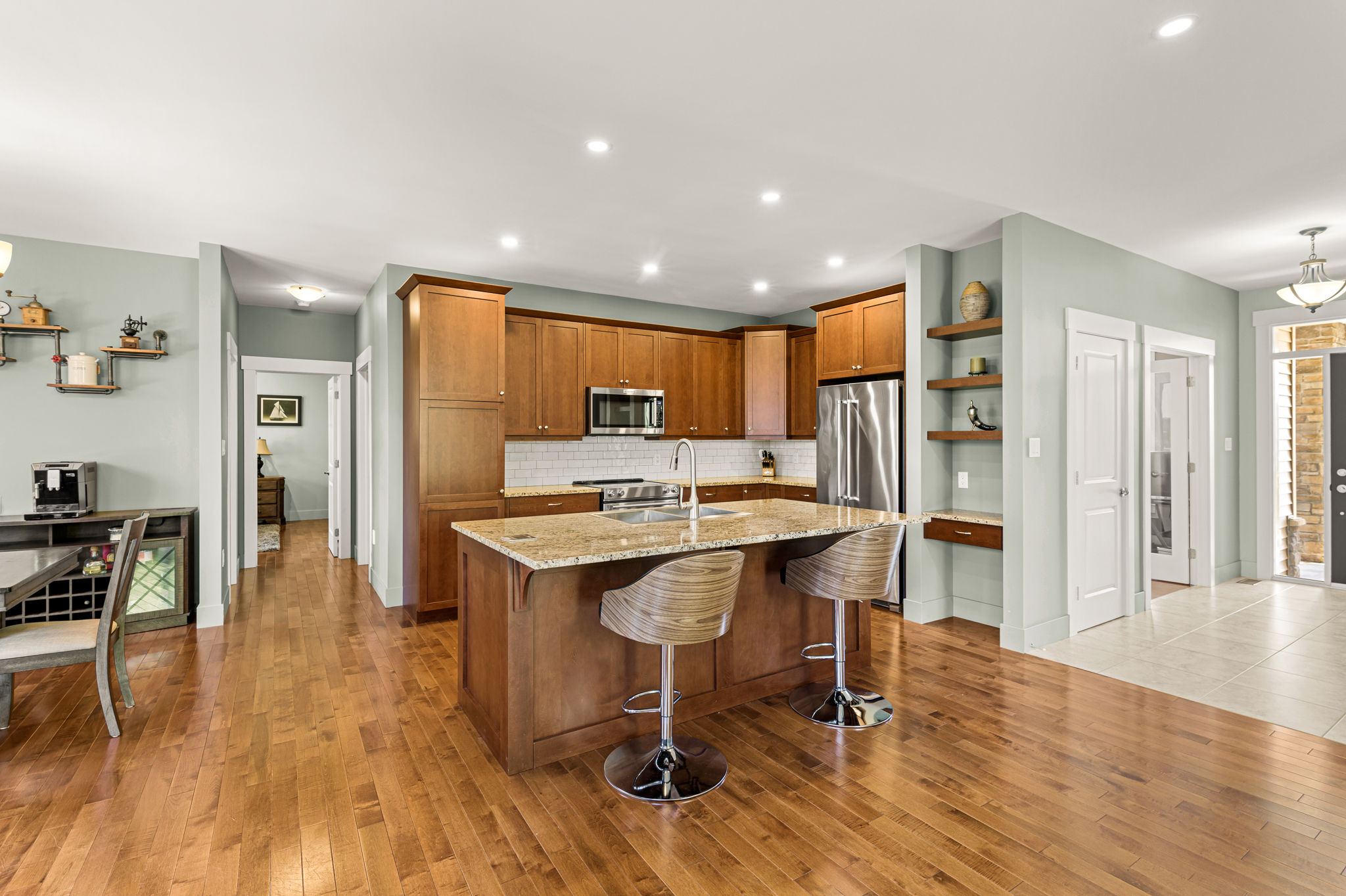 Beautifully designed bungalow tucked away on a quiet cul-de-sac in one of Dieppe’s most welcoming neighbourhoods. Offering 4 bedrooms, 9 ft ceilings, a bright open-concept main floor, and a fully finished basement, this well-maintained home blends comfort, style, and functionality with a double garage, central heat pump, and a landscaped backyard with covered deck and gazebo.
