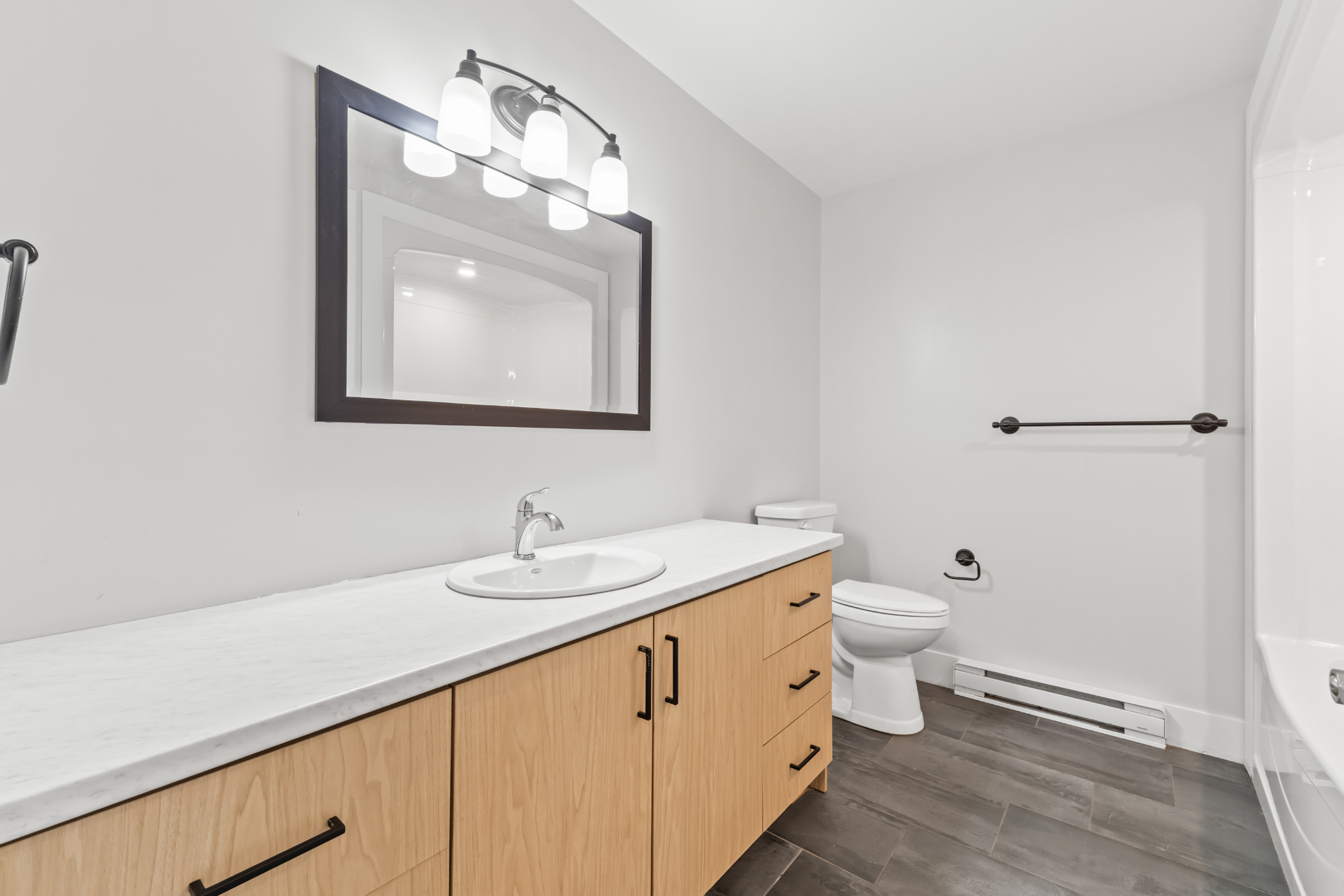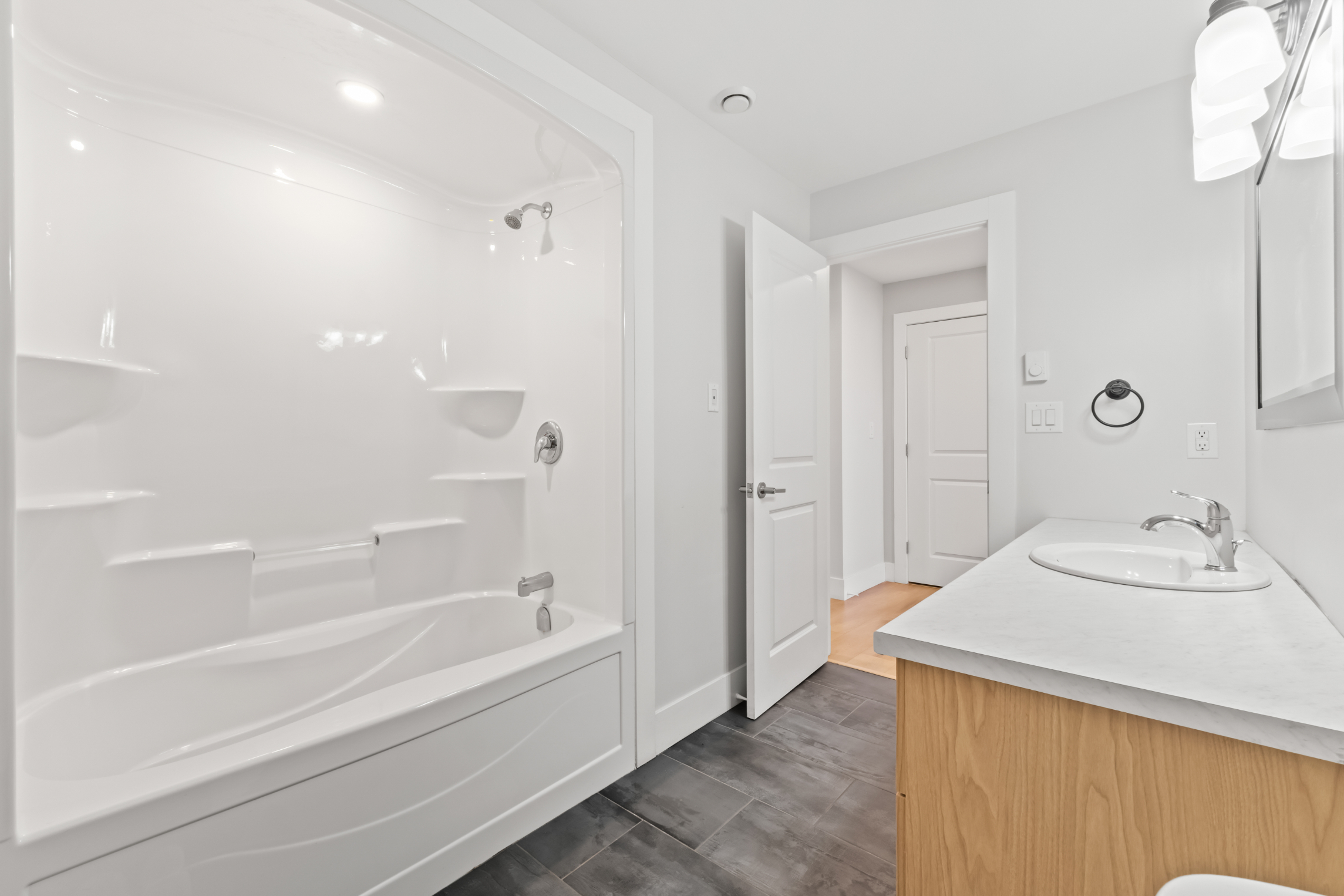 The lower level offers THREE well-sized bedrooms, each with great natural light and modern finishes. A full bathroom with a clean, contemporary design serves the bedrooms, while the dedicated laundry closet adds everyday convenience.
