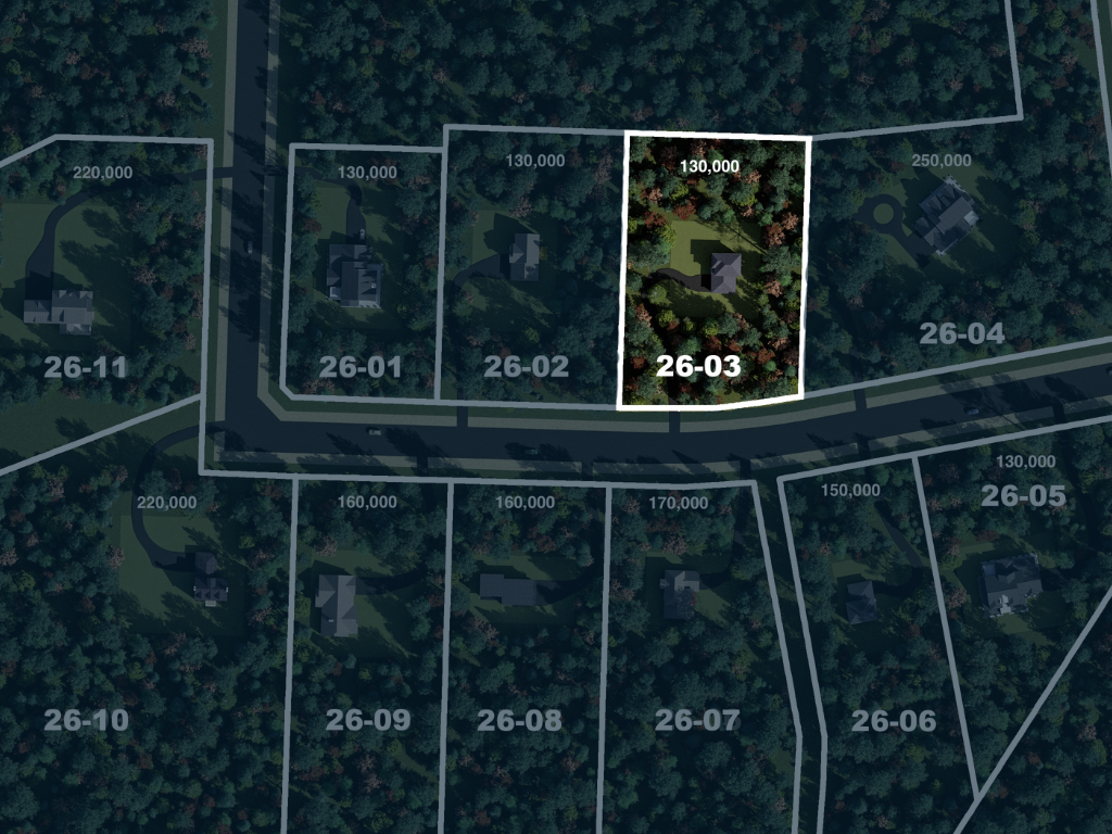 Lot 03 offers approximately 1.79 acres of beautifully wooded land. With ample space to build a custom dream home, this lot provides a permanent connection to nature while benefiting from high-end infrastructure, including a professional 24-foot-wide paved street.